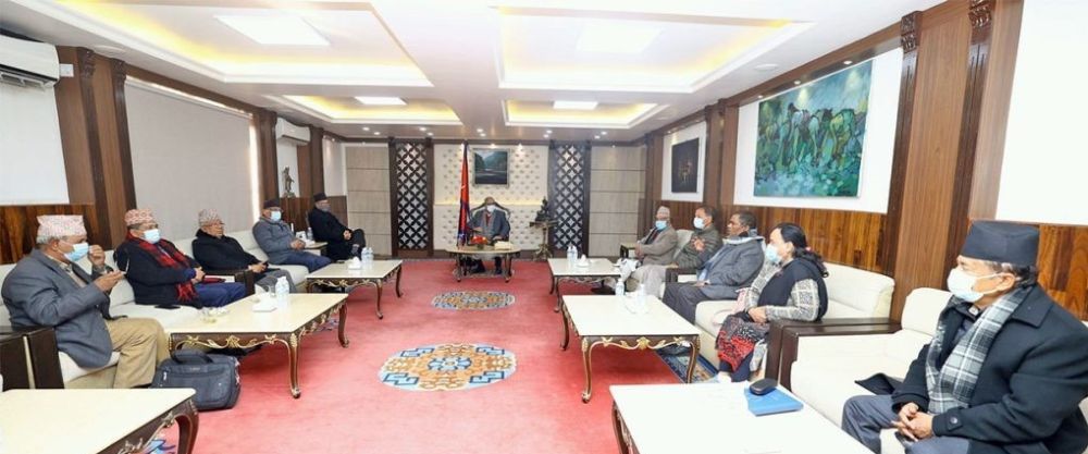 प्रधानमन्त्री एवं नेपाली कांग्रेसका सभापति शेरबहादुर देउवाको संयोजनमा आज अपराह्न ५ बजे बैठक बस्ने तय भएको प्रधानमन्त्रीका प्रेस प्रमुख गोविन्द परियारले जानकारी दिनुभयो । प्रधानमन्त्री निवास बालुवाटारमा बस्ने बैठकमा सत्तारुढ दल कांग्रेस, नेकपा (माओवादी केन्द्र), नेकपा (एकीकृत समाजवादी), जनता समाजवादी पार्टी नेपाल र राष्ट्रिय जनमोर्चाका शीर्ष नेताहरु सहभागी हुनुहुनेछ ।