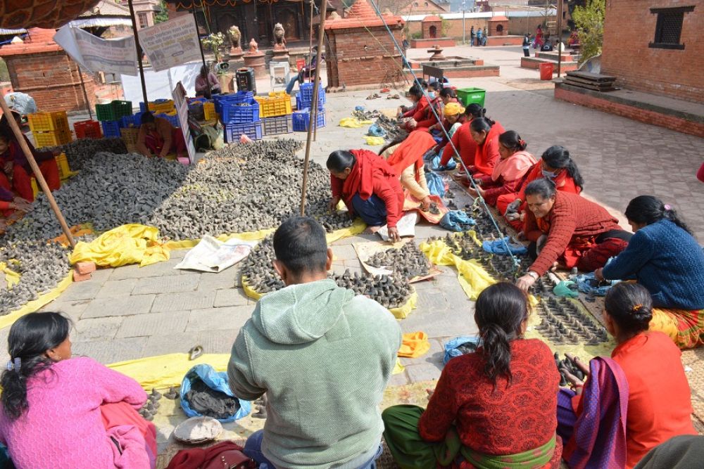 काभ्रेपलाञ्चोकको पनौती नगरपालिका–७ पनौतीस्थित इन्द्रेश्वर महादेव मन्दिर परिसरमा पुगेका महिलाले शिवलिङ्ग बनाउने काम गरिरहेका छन् ।