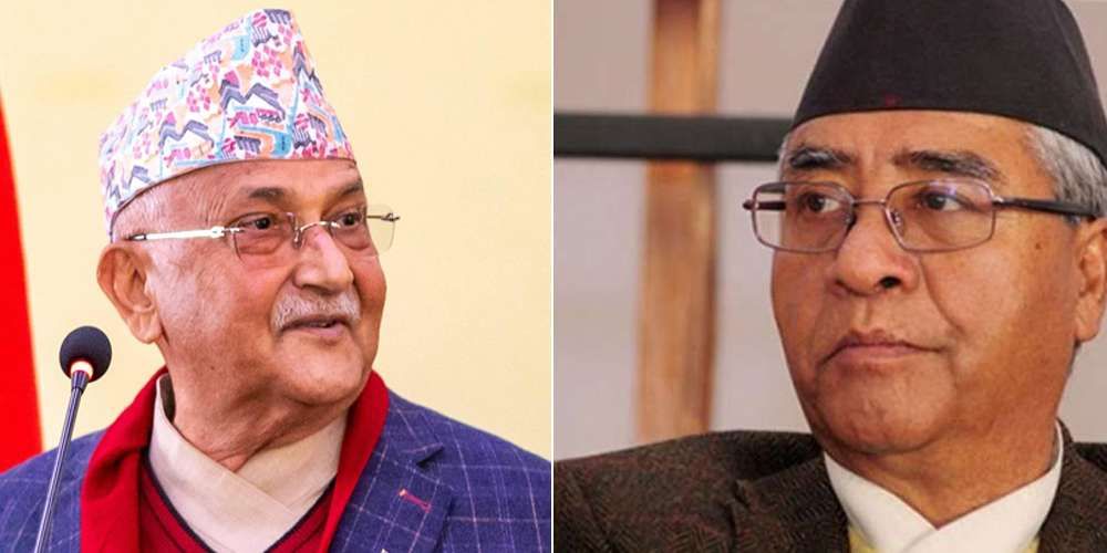 प्रधानमन्त्री एवं नेपाली कांग्रेसका सभापति शेरबहादुर देउवा र प्रमुख प्रतिपक्षी दल नेपाल कम्युनिष्ट पार्टी (एमाले) का अध्यक्ष केपी शर्मा ओलीबीच संसद्को गतिरोध अन्त्य र राजनीतिक निकासबारे छलफल भएको छ । सङ्घीय संसद् भवन नयाँ बानेश्वरमा केहीबेरअघिदेखि जारी छलफलमा कांग्रेस र एमालेका अन्य नेताहरु पनि छफलमा सहभागी हुनुहुन्छ । आज दिउँसो १ बजे बोलाइएको संसद् बैठक सूचना टाँस गरी स्थगित भए पछि सरकारको नेतृत्वकर्ता दल कांग्रेसका सभापतिसमेत रहेका प्रधानमन्त्री देउवाले प्रमुख प्रतिपक्षी दलसँग छलफल गर्नुभएको हो ।