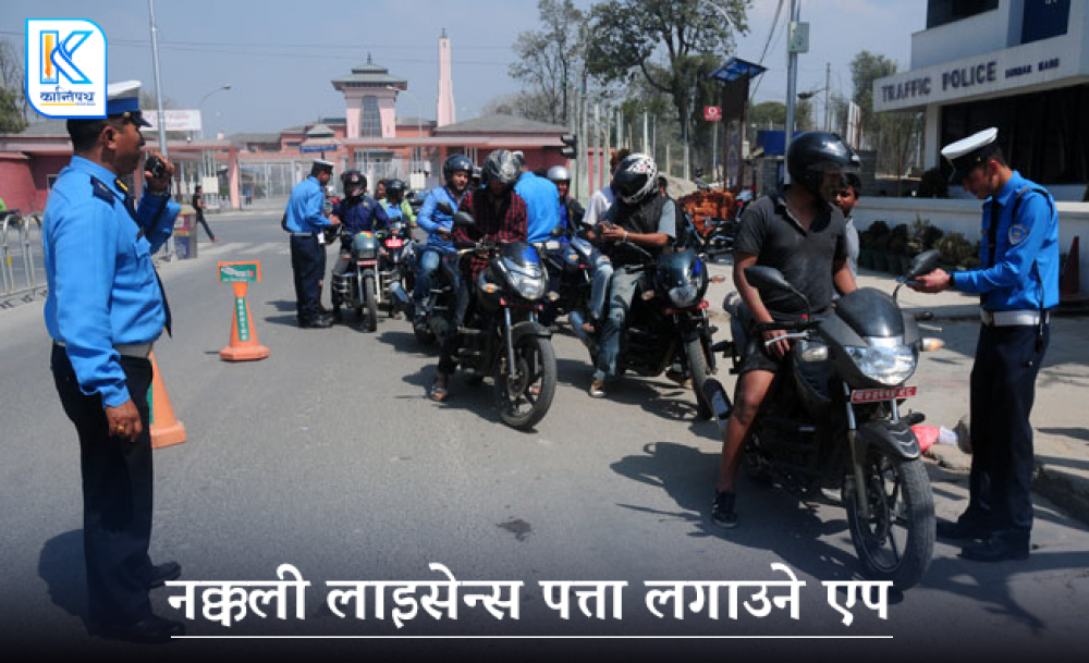 ट्राफिक प्रहरी नक्कली लाइसेन्स लिएर सवारी साधन चलाउने व्यक्तिलाई कारबाही गर्न यातायात व्यवस्था विभागले माेबाइल एपको विकास गरेको छ । यातायात व्यवस्था विभागले नक्कली सवारी चालक अनुमतिपत्रको प्रयोगमा नियन्त्रण गर्न मोबाइल एपको विकास गरी महानगरीय ट्राफिक प्रहरी महाशाखालाई हस्तान्तरण गरेको छ ।