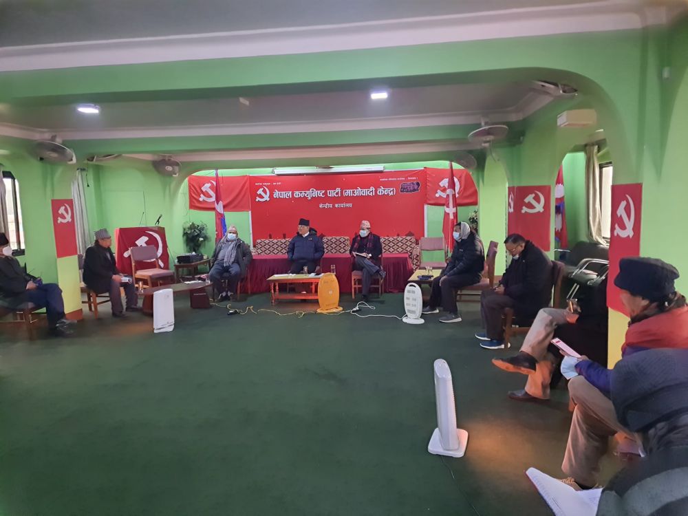 मिलेनियम च्यालेन्ज कर्पोसन (एमसीसी) बारे छलफल गर्न नेकपा (माओवादी) केन्द्रको केन्द्रीय कार्यालयको अनौपचारिक बैठक बसिरहेको छ । परिमार्जनसहित एमसीसी पारित गर्न माओवादी नेताहरू पार्टी अध्यक्ष पुष्पकमल दाहाल ‘प्रचण्ड’ निवास खुमलटारमा जुटेका हुन् ।