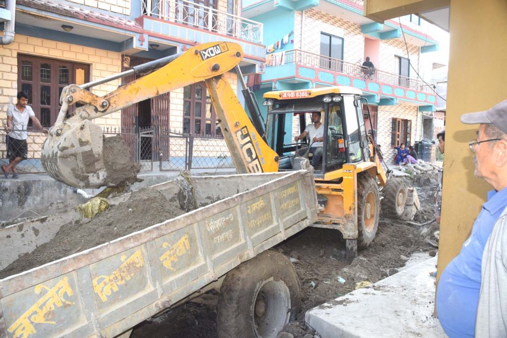 लमजुङ बेँसीशहर नगरपालिका– ८ स्थित भित्री सडक स्तरोन्नति गर्नका लागि डोजरले माटो खनेर ट्र्याक्टरमा हाल्दै । यस नगरपालिकाले विभिन्न स्थानका भित्री सडक निर्माण गर्ने कार्यदेखि स्तरोन्नतिमा जोड दिएको छ ।