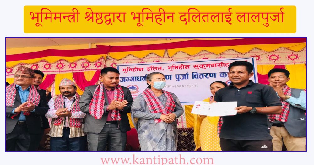 भूमिमन्त्री श्रेष्ठद्वारा भूमिहीन दलितलाई लालपुर्जा