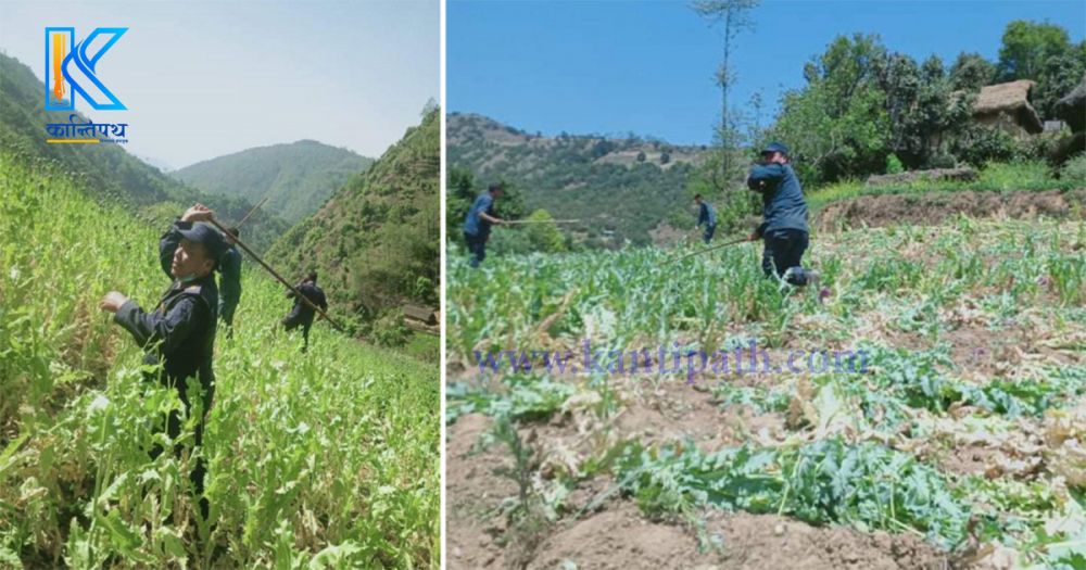 रोल्पा — प्रहरीले रोल्पाको भित्री गाउँमा ठूलो मात्रामा अफिम खेती नष्ट गरेको छ । सूचनाका आधारमा रोल्पा र रुकुमको सीमानजिक पर्ने परिवर्तन गाउँपालिका–४ सिजाखोलामा अफिम खेती भेटिएको प्रहरीले जनाएको छ ।