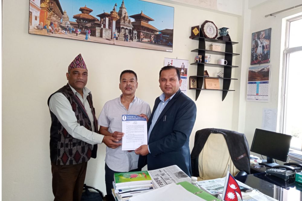 प्रेस काउन्सिल नेपालका अध्यक्ष बालकृष्ण बस्नेतलाई पत्रपत्रिका वर्गीकरणलाई व्यवस्थित बनाउन माग गर्दै समाजवादी प्रेस सङ्गठन नेपालका अध्यक्ष शम्भु श्रेष्ठ र कोषाध्यक्ष कृष्णराज गौतमबाट ध्यानाकर्षण ।