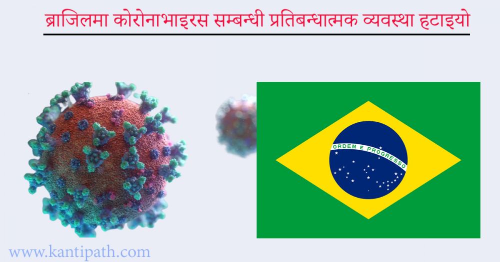 ब्रासिलिया, ५ बैशाख ब्राजिलमा कोरोनाभाइरस सम्बन्धी प्रतिबन्धात्मक व्यवस्थाहरू हटाइएको छ । सरकारले यसअघि लागू गर्दै आएको सार्वजनिक स्वास्थ्य सङ्कटकाल हटाउने निर्णय भएको अधिकारीहरूले जानकारी दिएका छन् ।