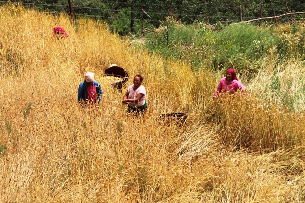 म्याग्दीको धवलागिरि गाउँपालिका–५ मलम्पारमा खेतबारीमा पाकेका जौ काट्दै गरेका स्थनीय । यतिबेला ग्रामीण भेगका किसानलाई हिउँदे बाली भित्र्याउने चटारो बढेको छ ।