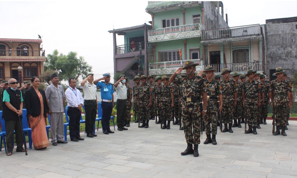 नेपालले अङ्ग्रेज फौजलाई परास्त गरेको बुटवल उपमहानगरपालिका —१ स्थित ऐतिहासिक जितगढी विजय दिवसका अवसरमा बुधबार कर्णेल उजिरसिंहको सम्मानमा सलामी अर्पण गर्दै नेपाली सेनाका टोली ।