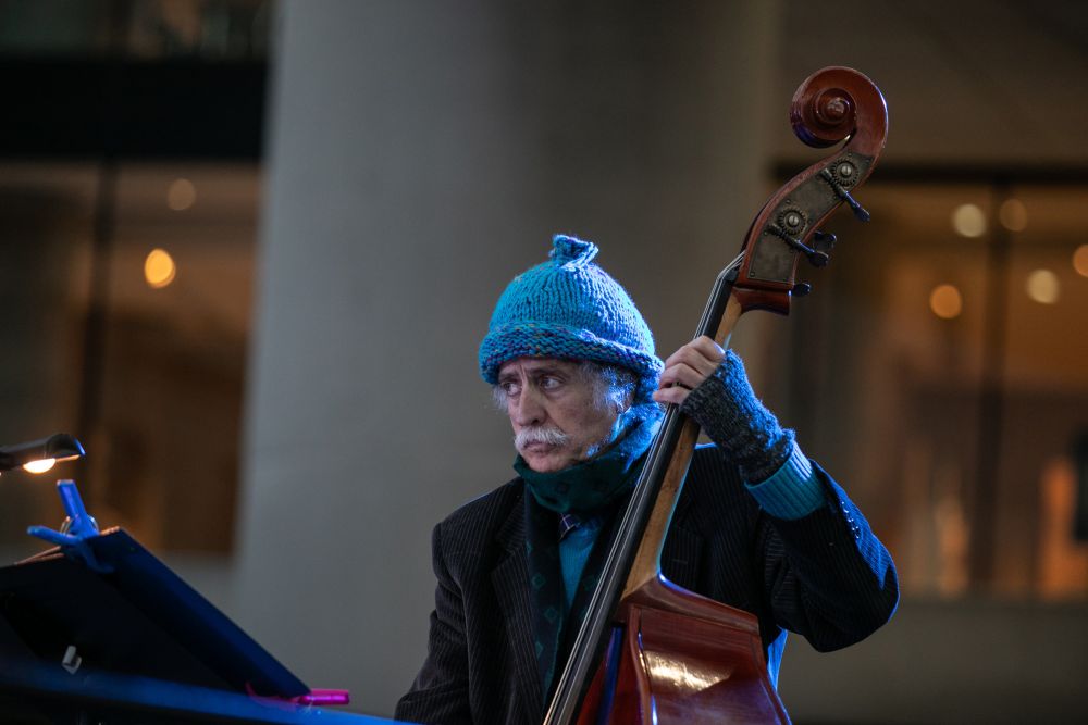 A musician performs in front of the Acropolis Museum during the first Sacred Music Festival in Athens, Greece, on April 19, 2022. The first Sacred Music Festival takes place at 17 landmarks in Athens from April 18 to April 20.