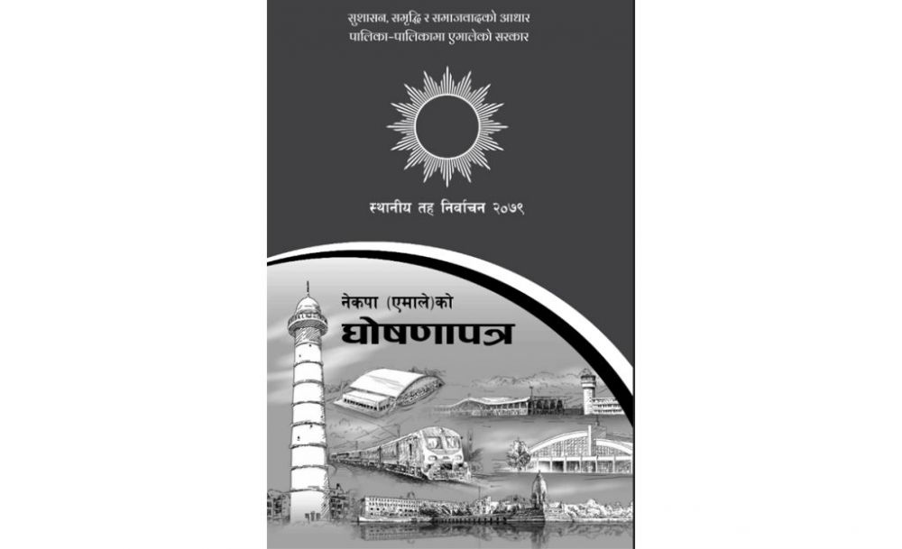 नेकपा एमालेले स्थानीय निर्वाचन २०७९ का लागि घोषणापत्र सार्वजनिक गरेको छ । पार्टी कार्यालय, च्यासलमा शुक्रबार आयोजित कार्यक्रममा वरिष्ठ उपाध्यक्ष ईश्वर पोखरेलले घोषणापत्र पढेर सुनाएका हुन् ।