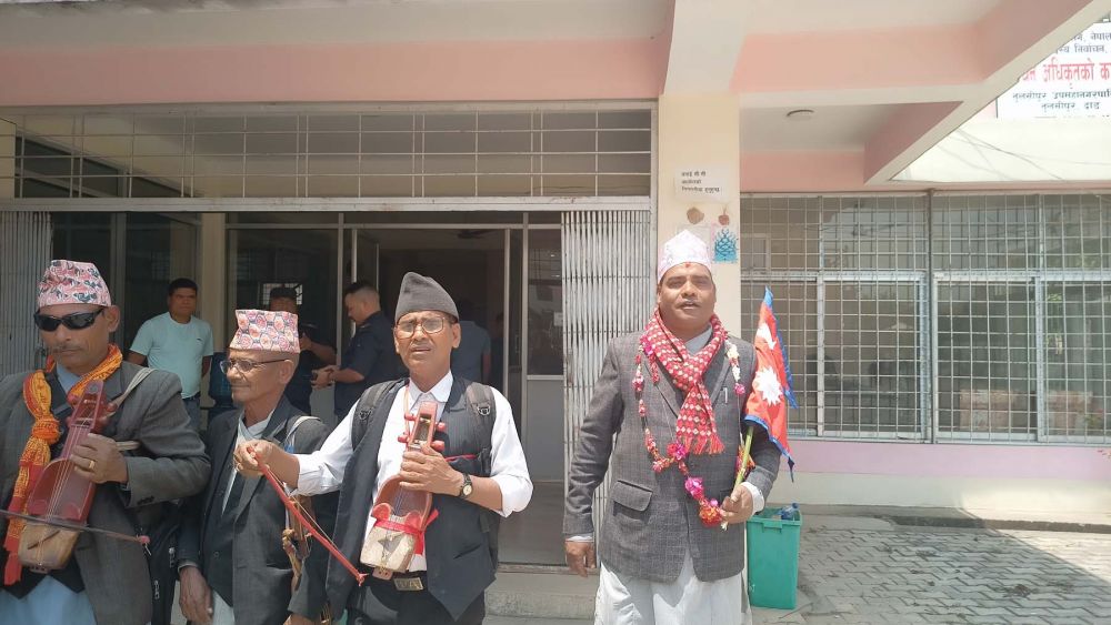 आसन्न स्थानीय तहको निर्वाचनमा तुलसीपुर उपमहानगरपालिकाको उपप्रमुख पदमा स्वतन्त्रबाट मनोनयन दर्ता गराउँदै शुशिल गन्धर्ब । उनी सारङ्गीसहित आफ्ना प्रस्तावक र समर्थकसहित निर्वाचन अधिकृतको कार्यालय तुलसीपुरमा पुगेका थिए ।