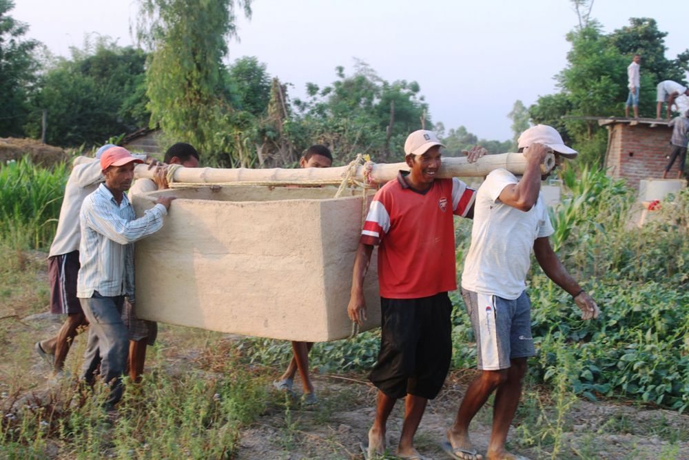 शुक्लाफाँटा नगरपालिका-३ पिपलाडीका थारु समुदाय माटोको भकारी बोकेर घर तर्फ लैजाँदै । थारु समुदायले परम्परागत रुपमा बनाउने माटोको भकारीमा धान, गहु लगायतका अन्न भण्डारण गर्न प्रयोग गरिन्छ।