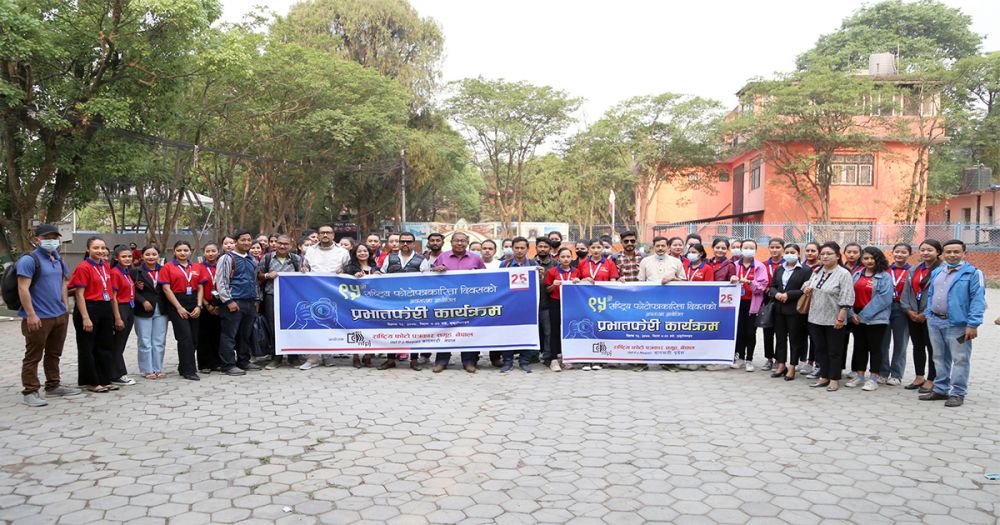 राष्ट्रिय फोटो पत्रकार समूहद्वारा ९५औं राष्ट्रिय फोटो पत्रकारिता दिवसको अवसरमा मंगलबार आयोजित प्रभातफेरी कार्यक्रमा सहभागी फोटो पत्रकारलगायत ।