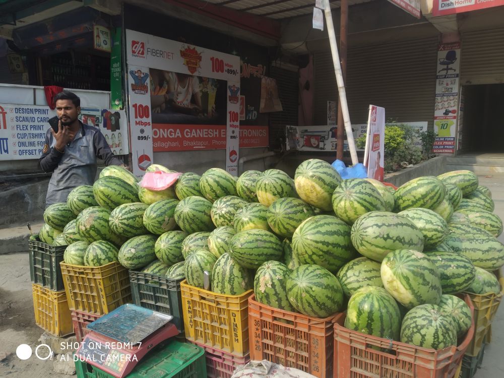 भक्तपुरको सल्लाघारीमा बेच्न राखिएका खर्बुजा । सिजन अनुसारको फलको रूपमा गर्मीको समयमा खाने खर्बुजा प्रतिकिलो ५० रूपैयाँमा बेच्ने व्यापारी बताउँछ ।