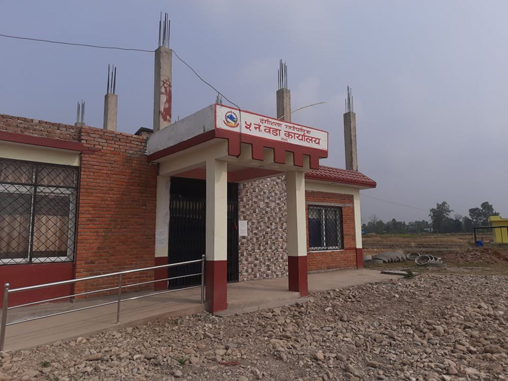 दाङको दंगीशरण गाउँपालिका–५ को नबनिर्मित भवन । यसअघि उक्त वडा कार्यालय भाडाको भवनबाट सञ्चालित थियो ।