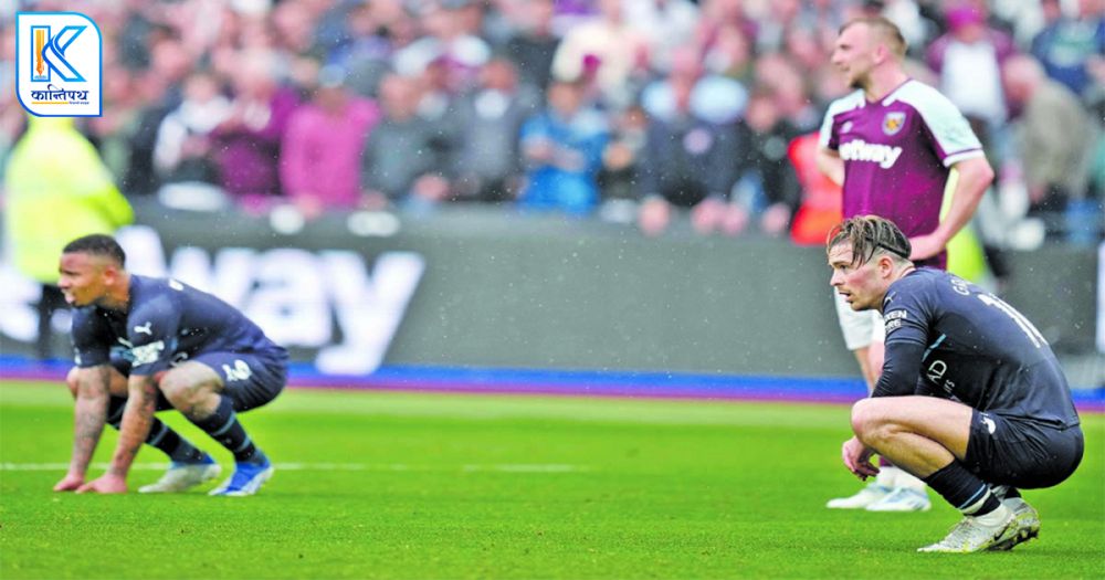 म्यानचेस्टर सिटीले इंग्लिस प्रिमियर लिगमा दुई गोलले पछाडि रहेको स्थितिबाट वेस्ट ह्यामलाई आइतबार २–२ को बराबरीमा रोकेको छ ।