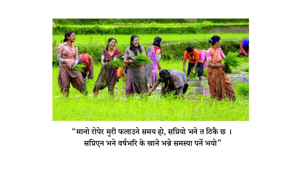 ‘छुपुमा छुपु हिलोमा धान रोपेर छोडौला, लगाइ पानी बनाइ कुलो आएर गोडौला’ यो गीतमा भनेझैँ दाङका किसान छुपुमा छुपु गरेर धान रोप्ने समयमा मलका लागि सरकारी संस्थामा धाउन बाध्य छन् । नेपाली कृषकका लागि असार १५ एउटा मौलिक पर्व नै हो । हिलोलाई छुने, दही चिउरा खाने दिनको छुट्टै महत्व रहेको छ । उन्नाइसौँ धान दिवस मलबिनाको रोपाइँ गरेर दाङका किसानले मनाउँदैछन् ।