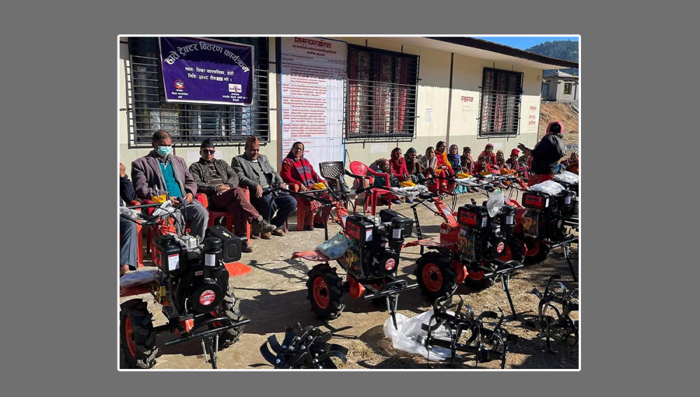 प्रदेश सरकारमा कृषि मन्त्रालयबाट रु चौबिस लाखको लागतमा उक्त ट्याक्टर प्रदान गरिएको गाउँपालिकाका निवर्तमान अध्यक्ष पूर्णसिं थापाले जानकारी दिनुभयो ।