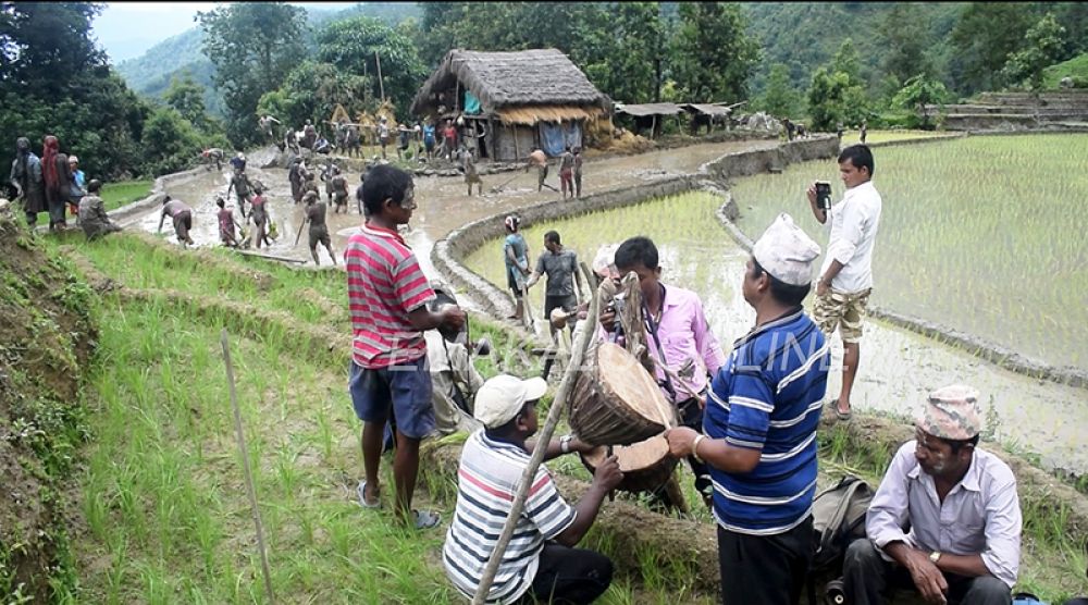 नौमती बाजाको तालमा रौसिँदै, असारे गीतको भाका हाल्दै, जोतेको हिलो माटोलाई लेदो बनाउन दाँदे लाउने, हिलो सम्याउने बाउसे, कोही पानीको मात्रा मिलाउने, कोही ब्याडमा बीउ काढ्ने, कसैले गरागरामा बीउका मुठा ओसारिदिने, रोपाहारले आपसमा उछिन र पाछिन गर्दै लहर मिलाएर बीउ रोपेको दृश्य निकै रोमाञ्चक हुन्थ्यो । सिमेभूमेको पूजा, ठूलो गरामा धान धेरै फलोस् भन्ने कामनासहित भकारी बाँधेर नाचसहित आपसमा हिलो छ्यापाछ्याप गर्दा दिनभरिको सबै थकान मेटिन्थ्यो । रोपाइँ सकेपछि भोज खाने चलन रहेकाले यसलाई किसानले पछिल्लो समय पर्वका रूपमा मनाउन थालेका थिए ।