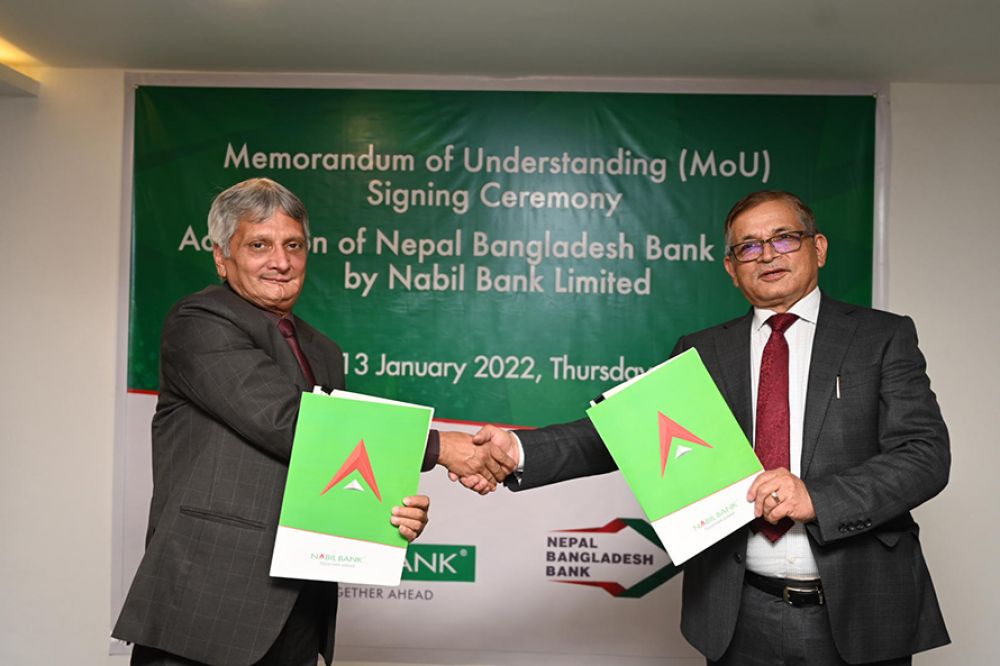 आजदेखि नबिल बैंक र नेपाल बंगलादेश बैंक औपचारिक रूपमै मर्जर हुने भएका छन् । यस मर्जरको घोषणा आज बेलुका ४ : ३० बजे हुदैछ । योसँगै मर्जरपछिको एकीकृत कारोबार नबिल बैंक लिमिटेड चुक्ता पुँजी २८ अर्ब ५७ करोड सहित हालसम्मकै ठूलो बैक बन्नेछ ।