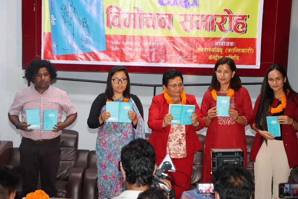 सन्तोष परियार र विमला तुम्खेवाले विमोचित पुस्तकमाथि टिप्पणी गरेका थिए । लेखक आचार्य अखिल क्रान्तिकारीकी प्रदेश १ उपाध्यक्ष हुन् । आचार्यको यो पहिलो कृति हो ।
