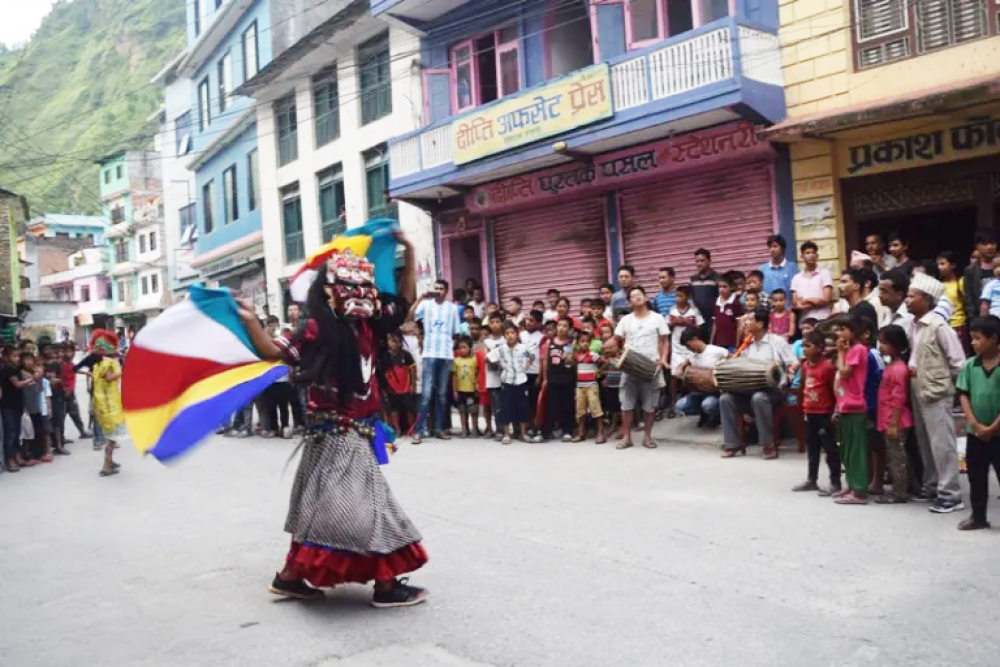 प्राचीन समयमा समाजमा खलपात्रका रुपमा चिनिएको घण्टाकर्ण नाम गरेको राक्षसको प्रतीक बनाई त्यसलाई बध गरेर (मारेर) कालीगण्डकीमा विसर्जन गरेसँगै एकमहिने बर्खे नाच सुरु भएको हो । नेपाल भाषा मंकाः खलको आयोजनामा मङ्गलबार सङ्गमचोकबाट तीनखुट्टे राक्षसको प्रतीकात्मक आकृतिलाई बजार परिक्रमा गराई बध गरेर कालीगण्डकी नदीमा विसर्जन गरिएको थियो ।