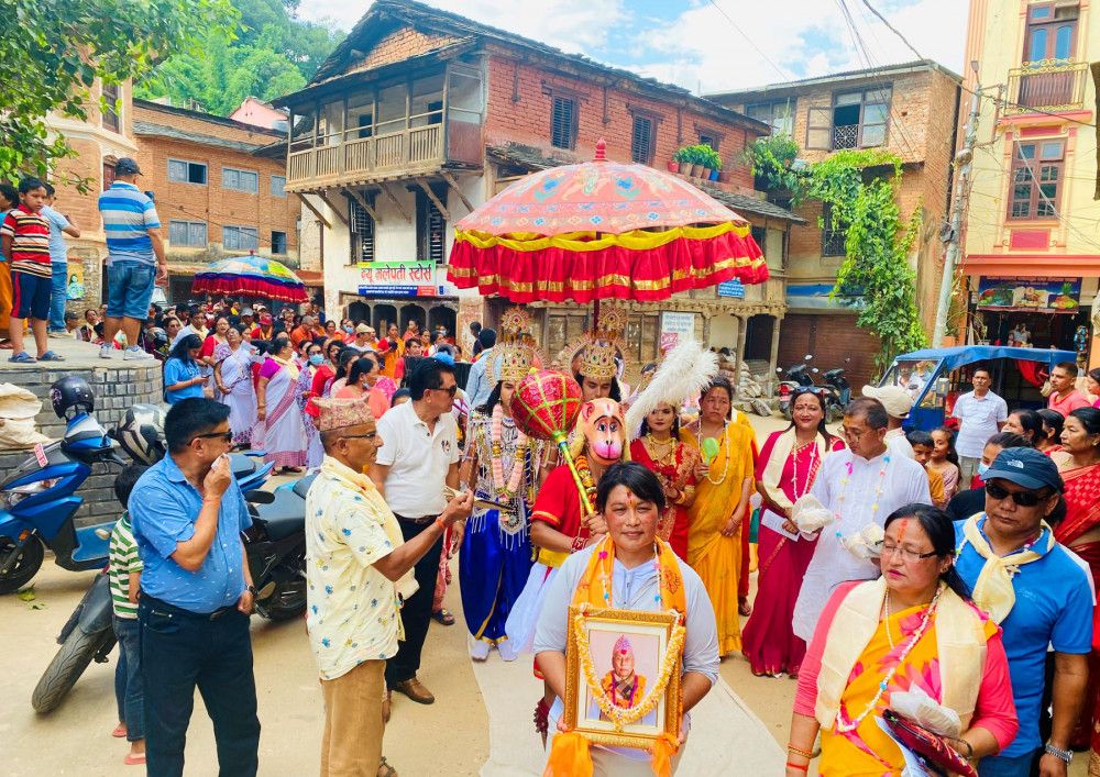 घरदेखि शोभायात्रा सुरु गर्दा पितृको पूजाअर्जना र शुभकार्यको कामनासहित कलाकारलाई टीकाटालो गर्ने चलन छ । बजार परिक्रमा गरेर फर्केपछि मुली व्यक्तिले वैदिक विधिअनुसार घर भित्र्याएपछि शोभायात्रा समापन हुन्छ । शोभायात्रामा सहभागी कलाकारलाई गच्छेअनुसार दक्षिणा दिने चलन छ । त्यसो गर्दा पितृ खुसी हुने धार्मिक विश्वास पनि छ ।