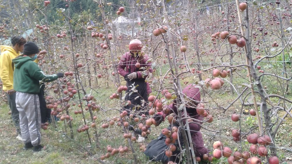 रैथाने प्रजातिका स्याउका बिरुवा लगाएको चार÷पाँच वर्षसम्म हुर्किन समय लाग्ने गरेको उहाँले बताउनुभयो । “हाइब्रिड प्रजातिको स्याउको बिरुवा लगाएकै वर्षमा उत्पादन सुरु हुन्छ,” उहाँले भन्नुभयो, “यसले गर्दा लगाएकै वर्षदेखि आम्दानी हुने भएकाले पनि यसतर्फ किसानको आकर्षण बढ्दै गएको छ ।” यहाँ उत्पादित स्याउ टिपेर भदौको पहिलो साताबाट बजारमा पु¥याउन सकिने उहाँ बताउनुहुन्छ ।