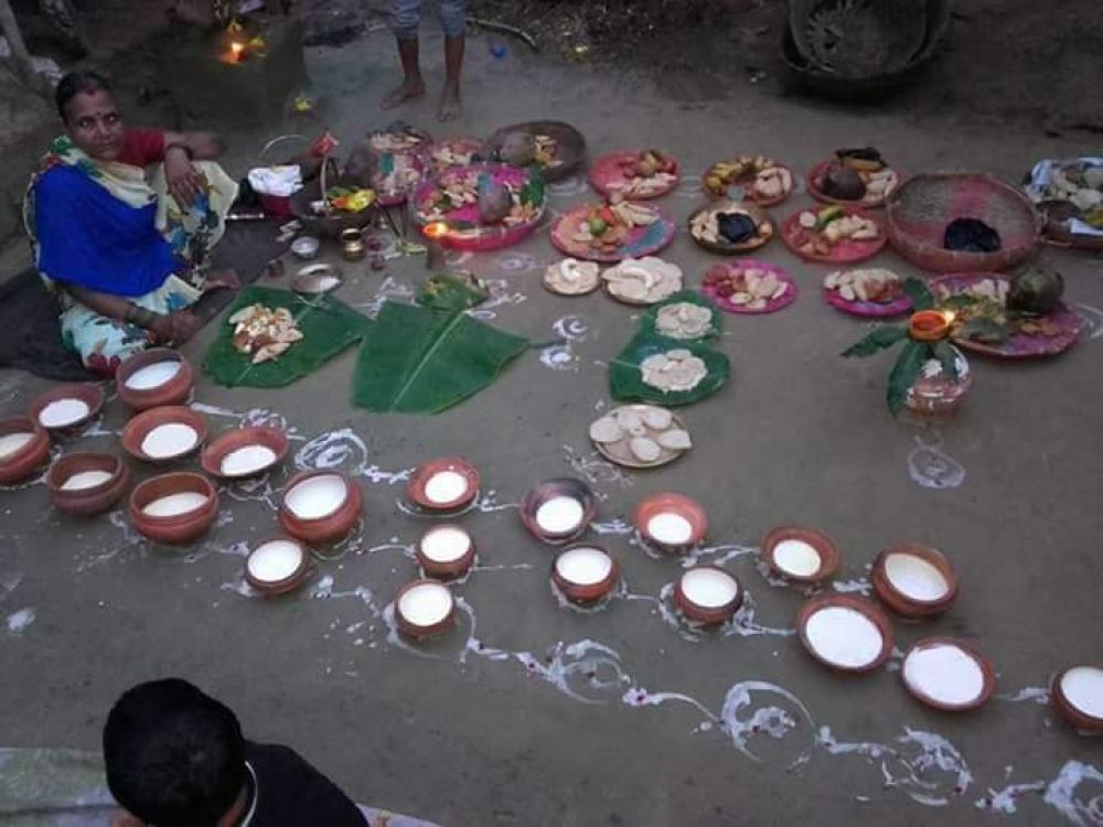 परिवारको सदस्य सङ्ख्या जति छ, त्यति नै पकवानयुक्त डाली र दहीको छाँछी अरिपनमा सजाएर केराको घरी, दीपयुक्त कुडवार (माटोको कलश), लावन आदि पूजा सामग्री राखिन्छ । एक–एक डाली, दही, केराको घरी उठाएर मन्त्रले प्रत्येक व्यक्तिले हातमा फल लिएर चन्द्रमाको दर्शन गरी आशीर्वाद लिने पण्डित महेन्द्रनारायण ठाकुर बताउनुहुन्छ । दही र फलफूल लिएर चन्द्रमाको दर्शन गरे पापबाट मुक्ति पाइने विश्वास छ ।