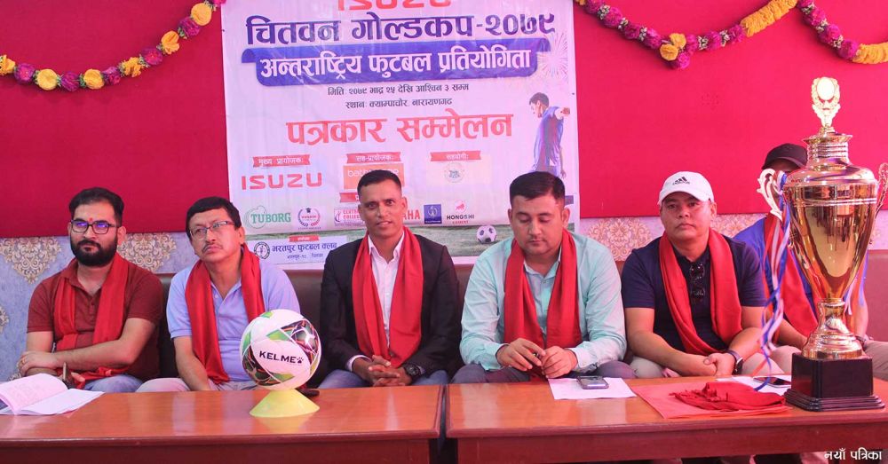 भरतपुर फुटबल क्लबले यही भदौ २५ गतेदेखि चितवन गोल्डकप आयोजना गर्ने भएको छ । चितवनमा नै सर्वाधिक धनराशिको यो प्रतियोगिता आगामी असोज ३ गतेसम्म सञ्चालन हुने भएको हो ।
