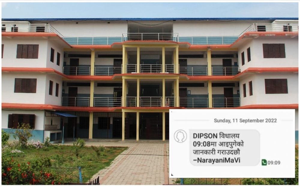चितवनको एक सामुदायिक विद्यालयले मोबाइल म्यासेजमार्फत विद्यार्थी विद्यालय पुगेको र बाहिरिएको जानाकारी दिने प्रविधि प्रयोगमा ल्याएको छ । भरतपुर महानगरपालिका–१० स्थित नारायणी नमूना माविले विद्यार्थीलाई समयमै विद्यालय आउने र घर जाने वातावरण बनाउन अभिभावकको मोबाइलमा म्यासेज पठाउन थालेको हो ।