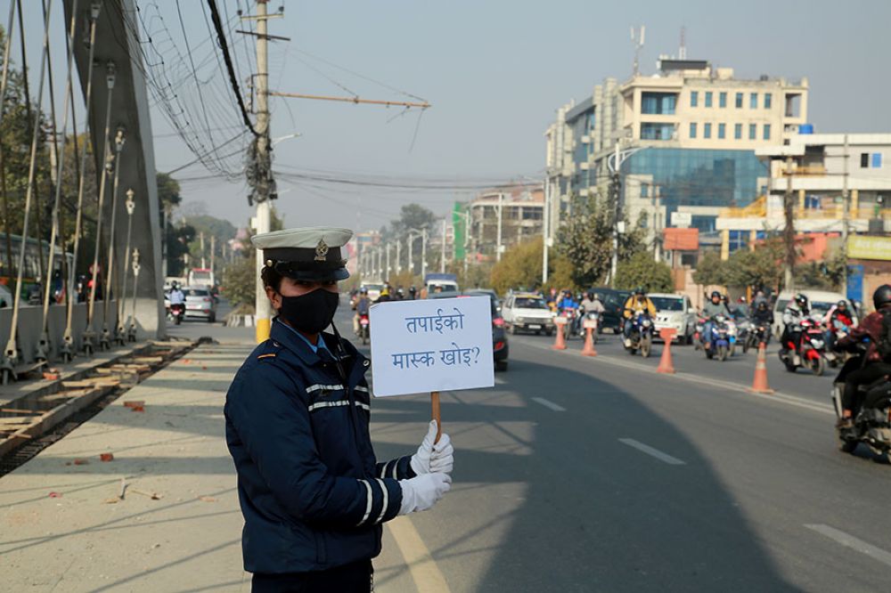 काठमाडौँ उपत्यका ट्राफिक प्रहरी महाशाखाका प्रवक्ता वरिष्ठ उपरीक्षक राजेन्द्रप्रसाद भट्टले कोभिड–१९ को सम्भावित जोखिमलाई ध्यान दिँदै नागरिकलाई सचेत गराउन ठाउँठाउँमा प्लेकार्ड र सचेतनामूलक काम पुनः सञ्चालन गरेको बताउनुभयो ।