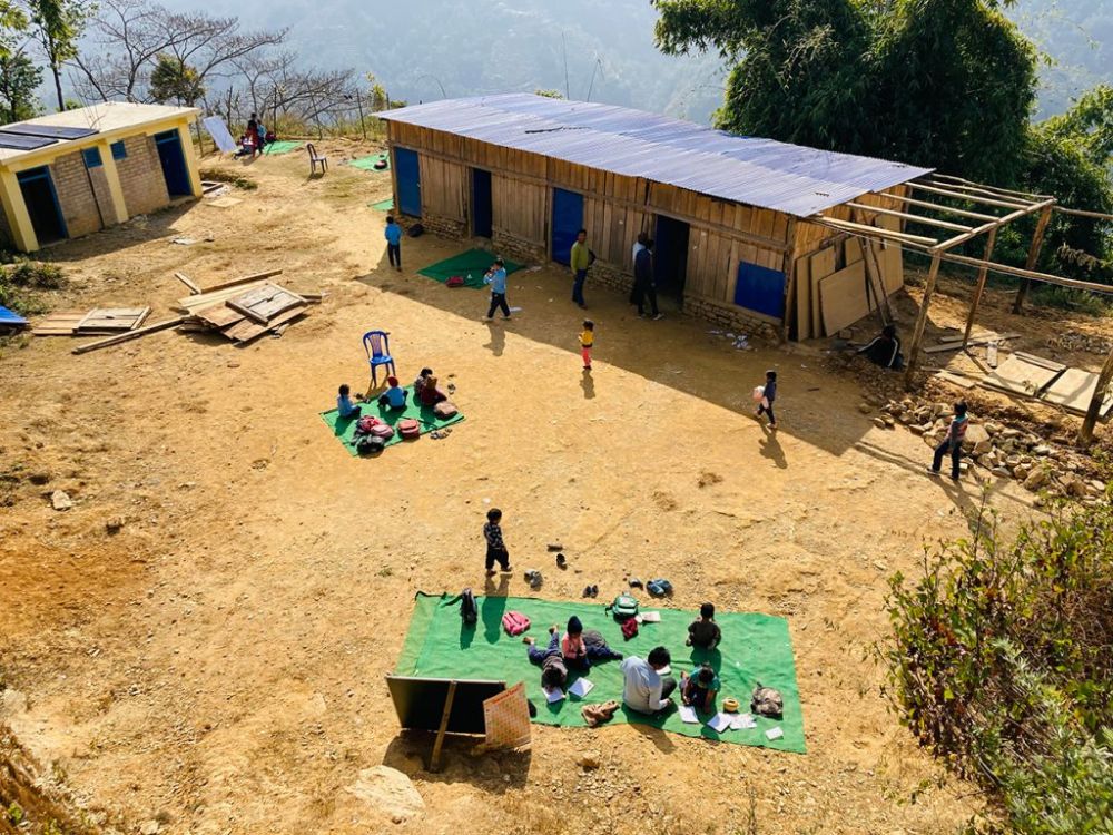 गलकोट। भिरालो जमिन खारेर बनाइएको चौरको छेउमा काठले बारेको तीन कोठा अस्थायी टहरा । टहराको एउटा  कोठामा कार्यालय र अर्का दुई कोठामा पठनपाठन । अन्य तीन कक्षा खुला आकाशमुनि । विद्यालयको प्राङ्गणमा कार्पेटमाथि चलिरहेको पठनपाठनको दृश्य बागलुङको जैमिनी नगरपालिकाभित्रको हो ।