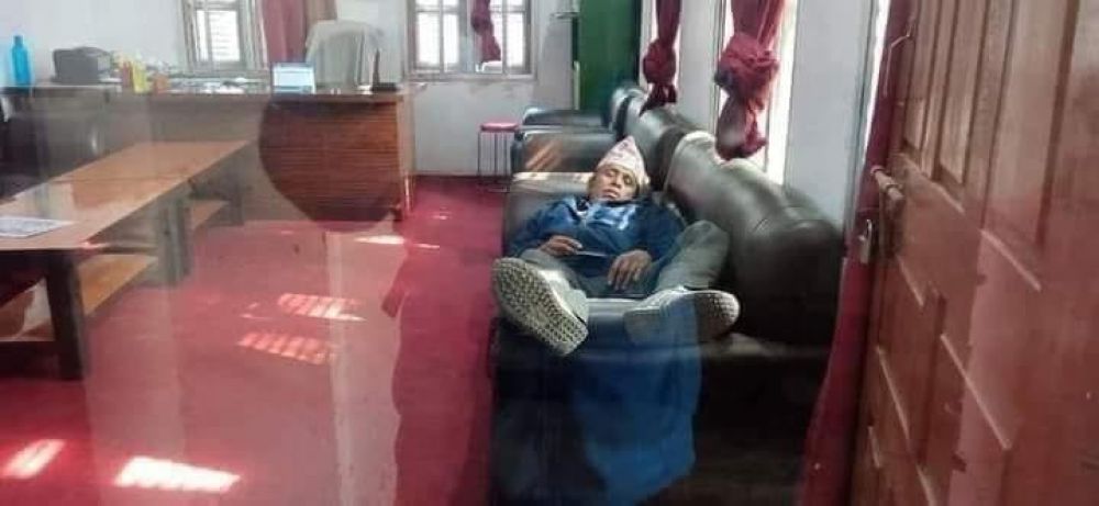 आज दिउँसो २ बजेको समयमा उनी सोफामा मस्त सुतिरहेका थिए । कार्यालयमा कार्यरत एक कर्मचारीले प्रमुखको कार्यकक्षमा राखिएको सोफामा मस्त सुतिरहेको तस्बिर खिच्दा पनि उनी नउठेपछि हल्लिखल्ली मच्चिएको बताइन्छ ।