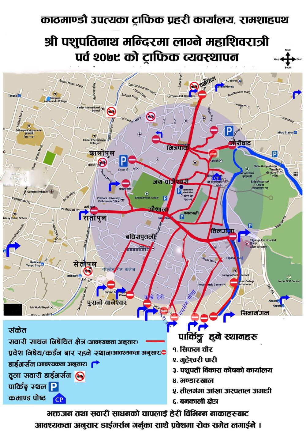 महाशिवरात्रि पर्वको अवसरमा तीलगंगा-गौशाला-जयबागेश्वरी-मित्रपार्कसहितको पाशुपत क्षेत्रमा शनिबार दिनभर यातायात प्रभावित हुने भएको छ।