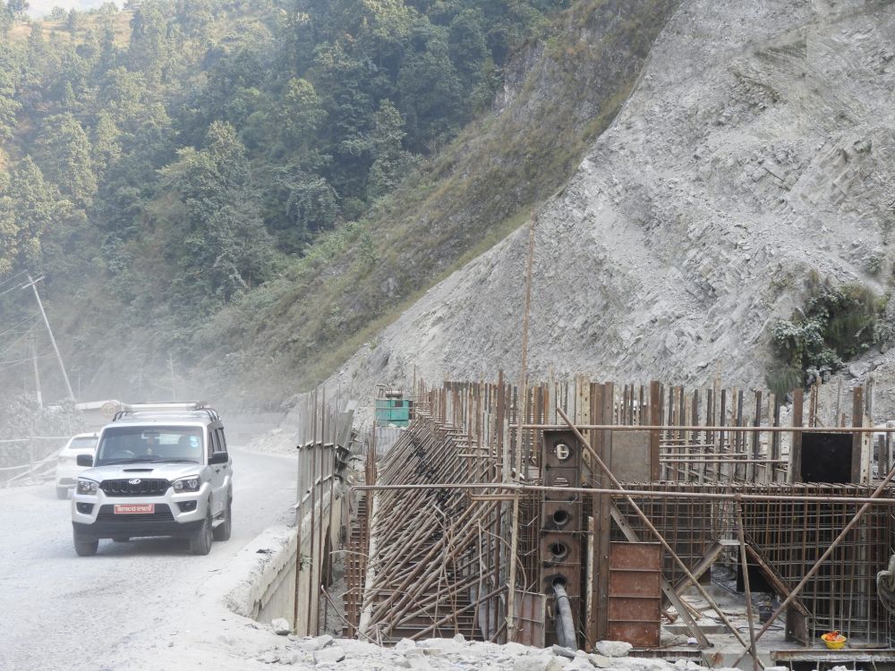 तुइन खोलाको पुल निर्माणका क्रममा ६० मिटर अग्लो कडा चट्टानसहितको डाँडो थियो । सो डाँडोलाई काट्न कठिन भएको हो । सो पहाडको अझै ४० मिटर काट्न बाँकी छ । यससँगै बाँकी रहेको चिसेन्जी खोलाको पुलको आडको देब्रेपट्टिको भित्तो काट्ने काम अन्तिम चरणमा रहेको छ । सिमलताल, कालीखोला र नाम्ची खोलाको भित्तो काट्ने काम सकिएको छ । यी पुलसँगै काम थालिएका नौ पुल भित्तो काट्न नपर्ने भएकाले बनिसकेका छन् ।