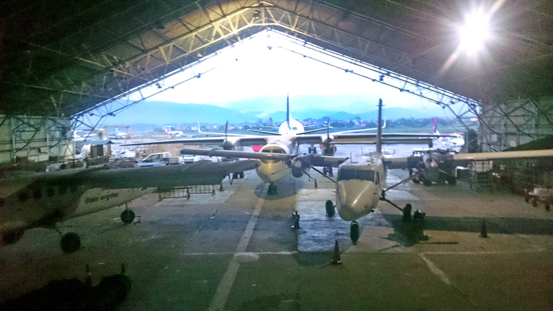Grounded Nepal Airlines Corporation’s aircraft are parked in the hangar of Tribhuvan International Airport for maintenance, in a picture taken on Monday, July 11, 2016. Photo: THT