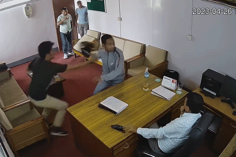 त्रिभुवन विश्वविद्यालयको समाजशास्त्र केन्द्रीय विभागका प्रमुख डा. युवराज लुइँटेलको कार्यकक्षमा आंशिक शिक्षक ललित विष्टले हेलमेट बजार्दै तोडफोड गरेको सिसि टिभी फुटेज बाहिरिएको छ । सो घटना बैशाख १३ गते भएको जनाइएको छ।
