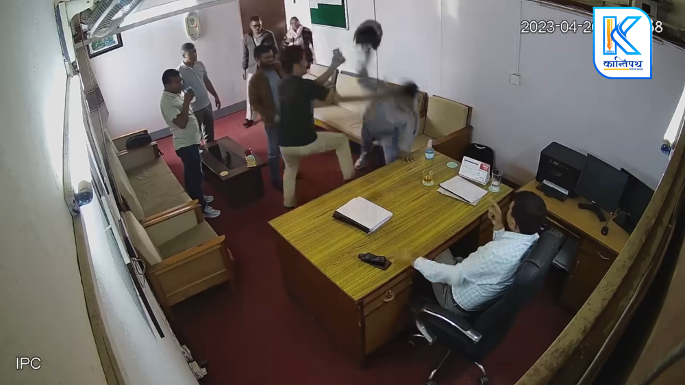प्रहरीलाई उपलब्ध गराइएको क्लोज सर्किट (सीसी) क्यामराको दृश्यमा शिक्षक विष्टले समाजशास्त्र केन्द्रीय विभागीय प्रमुख लुइँटेल विरुद्ध अपशब्द बोल्दै कार्यकक्षको टेबलमा हेलमेट बजारेको देखिन्छ । तनावको स्थिति सिर्जना भएपछि त्यहाँ उपस्थित एक जना विद्यार्थीले उनलाई रोक्ने प्रयास गरेको फुटेजमा देखिन्छ ।
