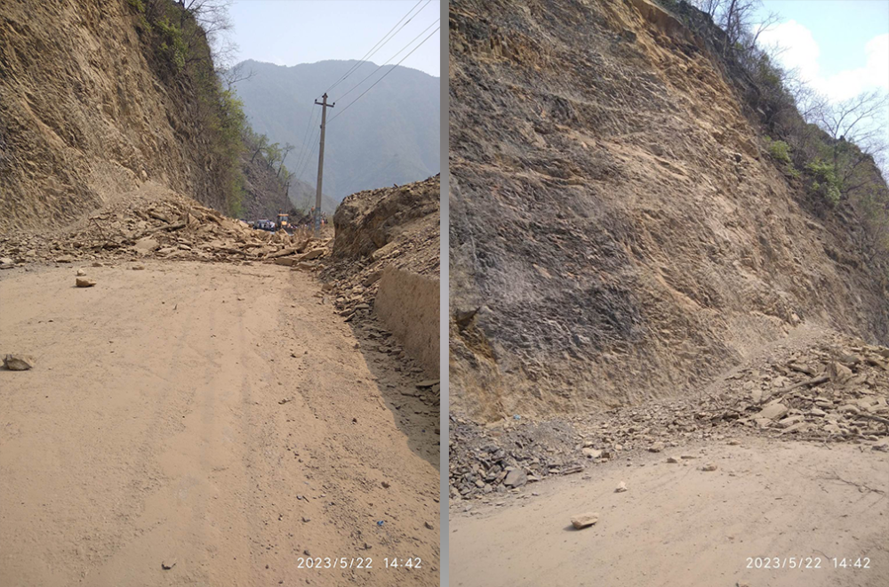 ईच्छाकामना गाउँपालिका वडा नम्बर ६ स्थित तीन नम्बर पुलको माथिबाट सुख्खा पहिरो झर्दा बाटो अवरुद्ध भएको हो ।