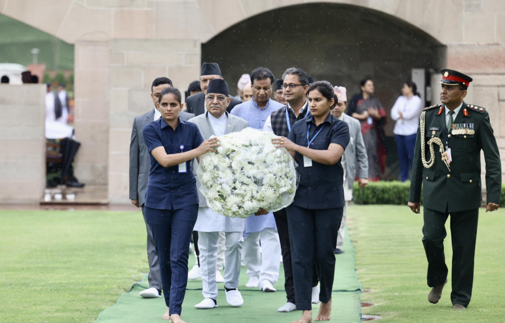 प्रधानमन्त्री पुष्पकमल दाहालले यसअघि बिहीबार भारतको राजघाटस्थित महात्मा गान्धीको समाधिस्थलमा पुष्पहार अर्पण गरेका छन् । भारत भ्रमणको पहिलो दिन बुधबार उनलाई स्वागत गर्न विमानस्थलमा भारतीय विदेश मन्त्रालयकी राज्यमन्त्री मिनाक्षी लेखी पुगेकी थिइन् ।