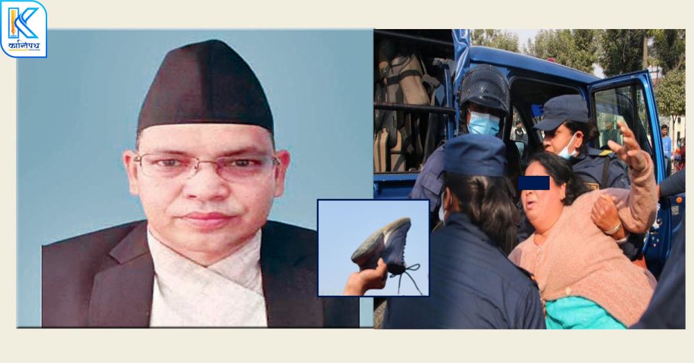 पूर्वन्यायाधीश भुवन गिरीमाथि काठमाडौं जिल्ला अदालतमा जुत्ता प्रहार भएको छ । गिरीलाई अदालतभित्रै उनको श्रीमती आरती गिरीले जुत्ता प्रहार गरेकी हुन् ।