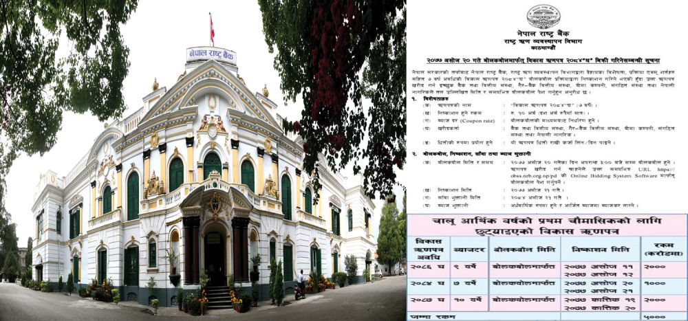 सरकारको तर्फबाट राष्ट्र बैंकले बोलकबोलमार्फत् विकास ऋणपत्र २०८६ ‘च’ निष्काशन गर्न लागेको हो । छ वर्षे अवधिको यो विकास ऋणपत्र बैंक तथा वित्तीय संस्था, गैर–बैंक वित्तीय संस्था, बीमा कम्पनी, सङ्गठित संस्था तथा सर्वसाधारण नागरिकलेसमेत खरिद गर्न सक्नेछन् । यो ऋणपत्रको ब्याजदर बोलकबोल प्रक्रियाबाट निर्धारण हुनेछ भने ब्याजदर अर्धवार्षिक रुपमा भुक्तानी गरिने राष्ट्र बैंकले जनाएको छ ।