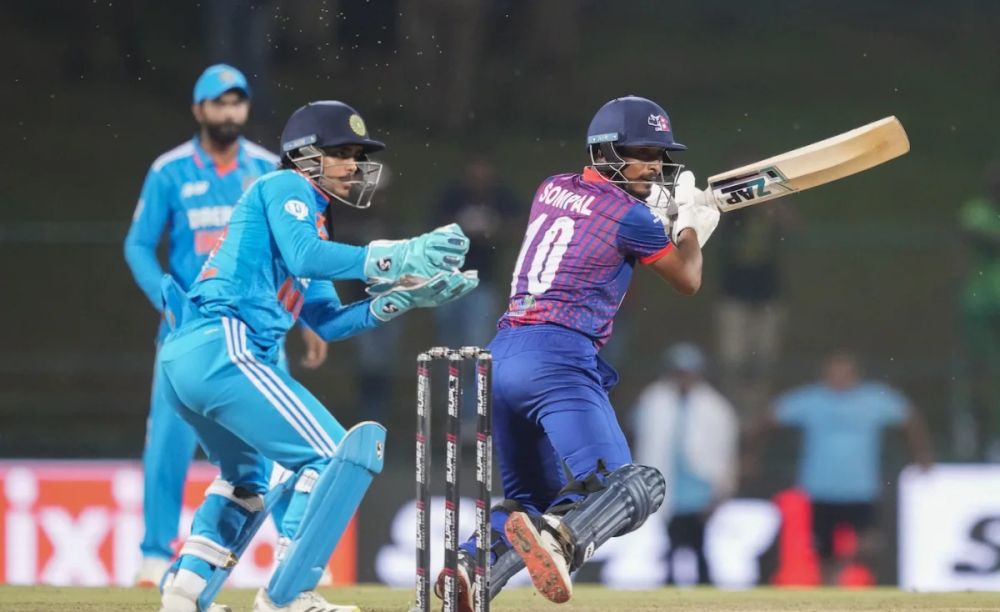 कप्तान रोहित पौडेल रविन्द्र जडेजाको बलमा ५ रनमा आउट भए। कुशल मल्ल चौथो विकेटको रुपमा २ रनमै आउट भए। भीम सार्की पनि ७ रनमा भारतका जडेजाको बलमा १६ ओभरमा बोल्ड भए।