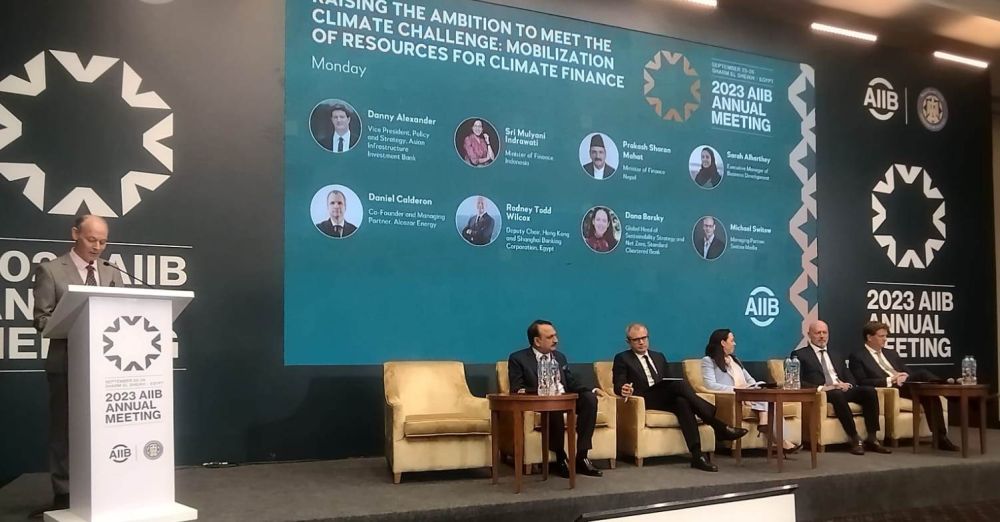 नेपालमा जलवायु परिवर्तनसँग सम्बन्धित परियोजनामा जलवायु वित्तका रुपमा पनि लगानी बढाउन सकिने उहाँको भनाइ छ । एआइआइबीको बैठकमा दिगो विकासका लागि उत्तरदायी विश्वव्यापी लगानी, उदीयमान अर्थ व्यवस्था भएका मुलुकमा दिगो पूर्वाधारका लागि सहयोग, हरित तथा नवप्रवर्तनमा आधारित लगानी प्रवद्र्धन, जलवायु वित्तको अवसर पहिचान तथा स्रोतको खोजी लगायतका विषयमा छलफल हुने जनाइएको छ ।