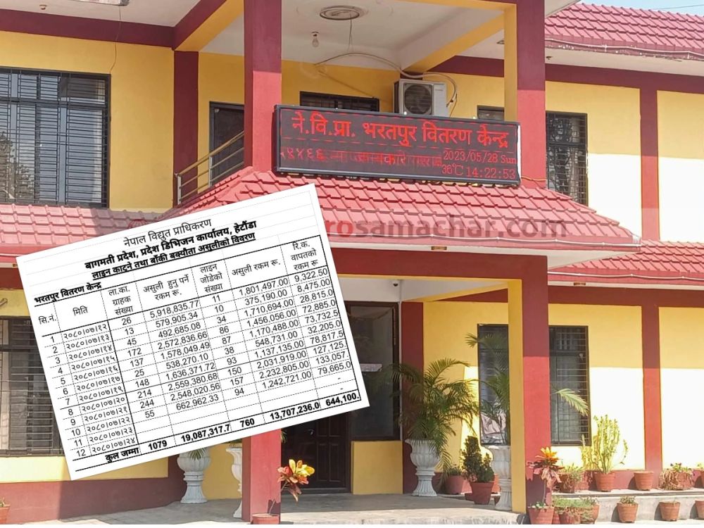 चितवन- दसैँपछिको दश दिनमा नेपाल विद्युत् प्राधिकरण भरतपुर वितरण केन्द्र मात्रै पाँच महिना अवधिसम्म विद्युत् महसुल नबुझाउने एक हजार ७९ जना ग्राहकको लाइन काटेको छ ।