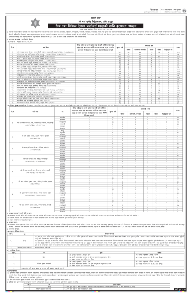 सैन्य पदमा ३ हजार र सूचिकार, सफाईकर्मी, चर्मकर्मी, लोहाकार, केशकर्तक, माली लगायतका पदमा ४१३ जना नयाँ कर्मचारी भर्नाको लागि दरखास्त आह्वान गरिएको नेपाली सेनाको भर्ना छनोट निर्देशनालयले जनाएको छ।