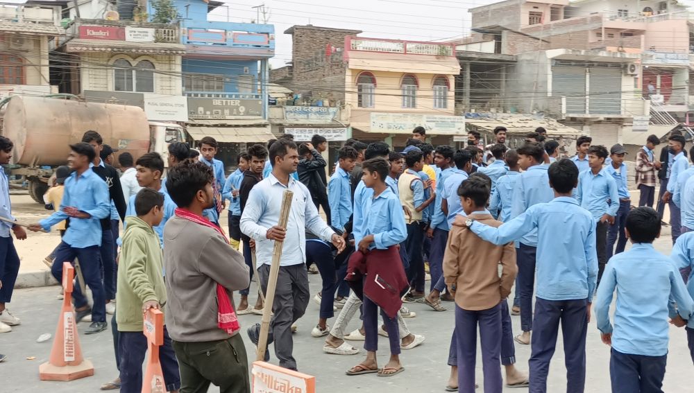 सिराहा – शिक्षकमाथि हातपात भएको भन्दै शिक्षक र विद्यार्थीले महेन्द्र राजमार्गको मिर्चैया बजारमा चक्काजाम गरेका छन् । मोहन उच्च माध्यमिक विद्यालयका शिक्षकमाथि हातपात भएपछि शिक्षक र विद्यार्थीले घटनाको विरोधमा चक्काजाम गरेका हुन् ।