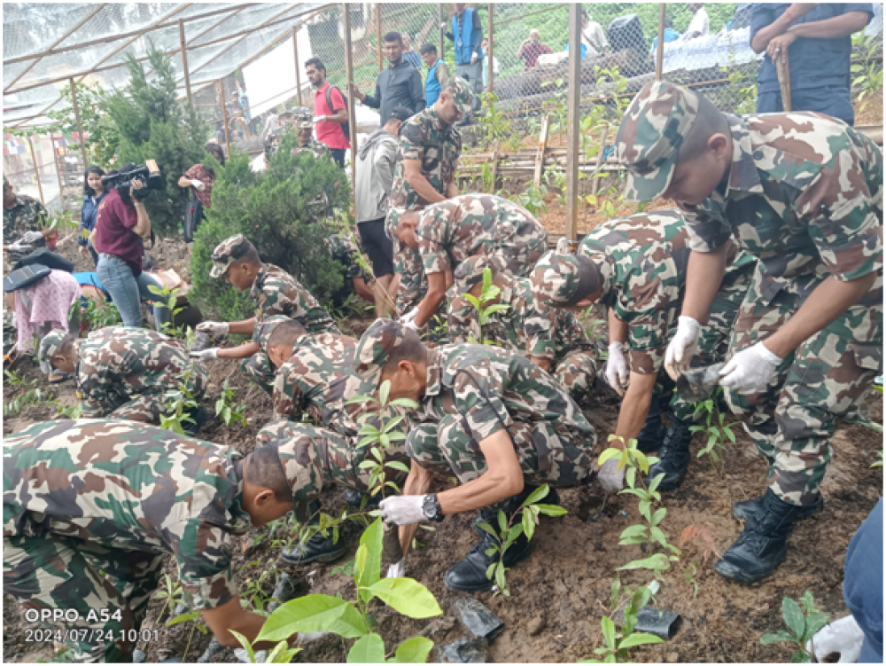 जिल्ला वन डिभिजन कार्यालय, यामाहा बी फार्म एण्ड योकोहामा सिटी युनिभर्सिटी अफ जापानको समन्वयमा भएको वृक्षारोपण कार्यक्रममा नेपाली सेना, नेपाल प्रहरी, महासमितिका पदाधिकारी र कर्मचारीले बिरुवा रोपेका थिए ।