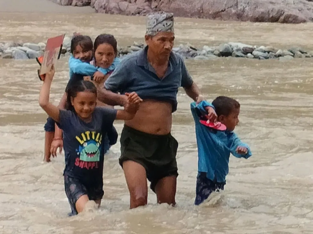 वर्षायाममा उनीहरू जोखिमपूर्ण यात्रा गरेर जगातिस्थित समैजी आधारभूत विद्यालय जान बाध्य छन् ।